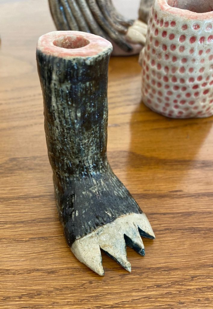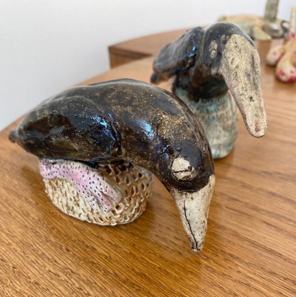Nourrie par une enfance au contact de la nature, Marie-Anne Briskmann développe très tôt un regard attentif au vivant. La botanique, les herbiers et l’étude des remèdes anciens enrichissent un imaginaire qu’elle prolonge par le dessin et la peinture aux Beaux-Arts de Poitiers. Après des débuts en gravure et en peinture, la céramique s’impose comme son médium privilégié. Le passage au volume lui permet d’explorer une présence plus incarnée, où la matière, transformée par la cuisson, introduit une part d’imprévisible pleinement intégrée à sa démarche.